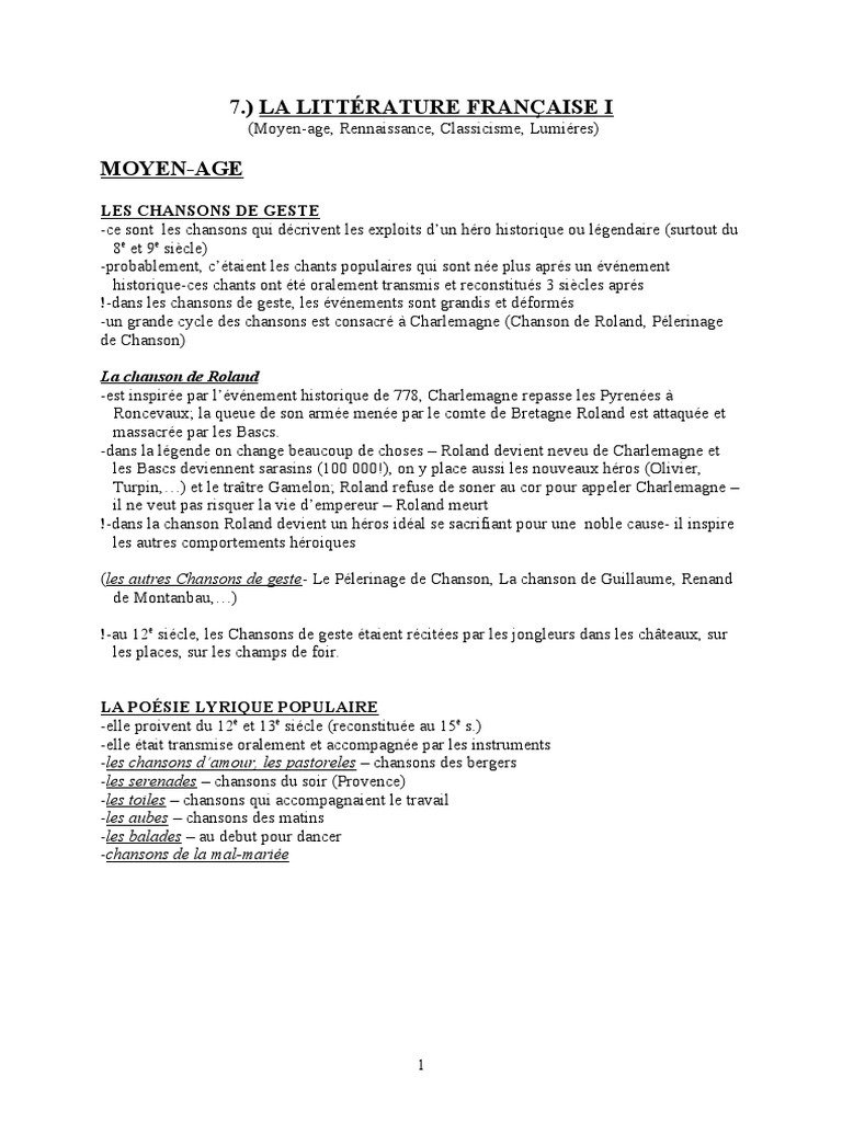 7 La Litterature Francaise I Moyen Age Les Chansons De Geste Chretien De Troyes Poesie